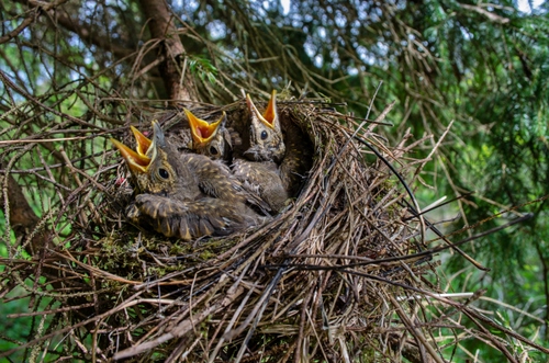 Altri tag (senza riscontro): pulli, erba, pulcini, bocche, uccello, verde, arancione, becco, neonati, occhi, alberi.