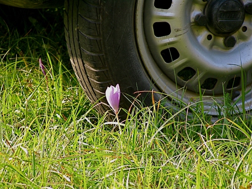 mi è piaciuto molto il contrasto tra il "mostro" ruota e il delicato fiore di crocus la mia originale