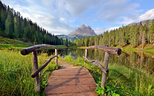 @Marivodo, da Misurina prendi la strada che sale alle Tre Cime, dopo un paio di km c'è il lago Antorno con questo ponticello. Se ci vai d'inverno (viste le tue foto) spesso la strada è chiusa proprio al lago, non lo puoi "mancare" ![]() |