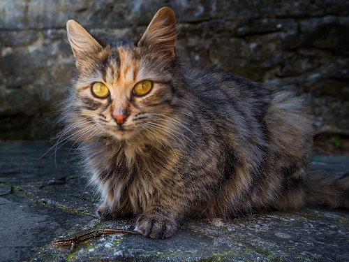 Altri tag (senza riscontro): animali, pietre, striato, sguardo, tigrato, quadrupede, soriano, accucciato, beige, gialli, lucertole.