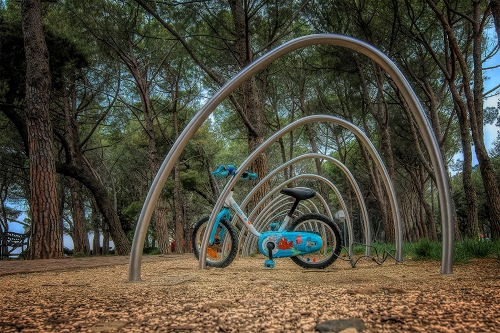 Molto simpatica la biciclettina per bimbi parcheggiata nel parco. Foto ben fatta sotto tutti gli aspetti. Centrato il tema "biciclette", bella la pineta che dona il senso del contatto con la natura. Ottime le inquadrature, la nitidezza della foto e bellissimi i colori. La serie di tubi metallici, per delimitare il parcheggio delle bici, non è invasiva ed é in sintonia con l'ambiente. Comprensibile l'accostamento della bellezza di una pineta alla vicinanza del mare, si percepisce la sua presenza. |