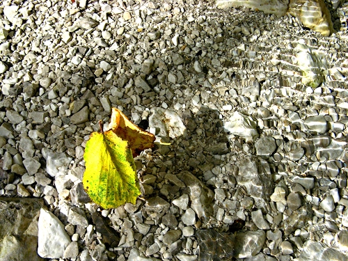 Foto dell'autore mavi80 candidata al contest fotografico sassi su Dizy. Data inserimento: mercoledì 23 ottobre 2019. Titolo: Astratto con acqua e foglie