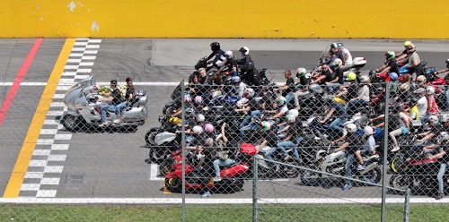 Foto dell'autore salpa candidata al contest fotografico dolore su Dizy. Data inserimento: domenica 3 novembre 2019. Titolo: Sfilata di moto in pista alle esequie di Fabrizio Pirovano "Piro"