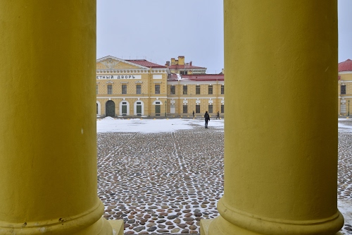 Si, in effetti le colonne sono parte di un portico antistante il cortile. |