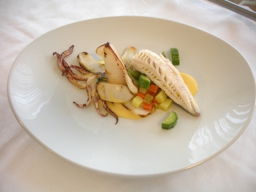 33° stroscia ligure con crema di ricotta cioccolato e coulis di fragola | 71° Treccina di nasello, verdure al naturale,salsa di gamberi e carciofo fritto |