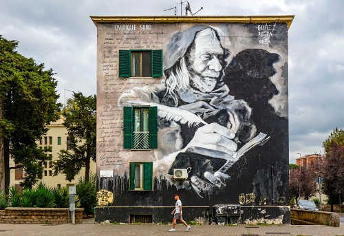 oltre che una foto ben fatta, è interessante il contesto in cui nasce il "graffito" o murale che dir si voglia. Brava Diana! |