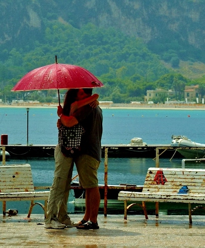 Foto dell'autore lumagi candidata al contest fotografico abbraccio su Dizy. Data inserimento: martedì 23 febbraio 2021. Titolo: sotto l'ombrello rosso