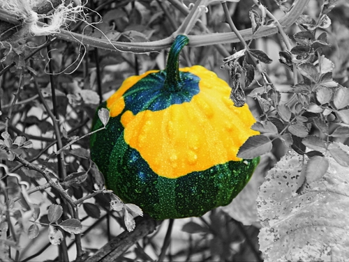 Foto dell'autore MV03041951 candidata al contest fotografico bicolore su Dizy. Data inserimento: lunedì 1 settembre 2014. Titolo: Zucca giallo-verde