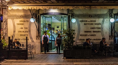 Altri tag (senza riscontro): balaustra, marciapiedi, luogo, ristorante, pianta, avventori, verde, terrazza, parole, vetro, bianco, dolci, caffetteria, gelateria, insegna, banco, grembiule, rotonde, imperiale, vasi, aperto, specialità, rotondi.