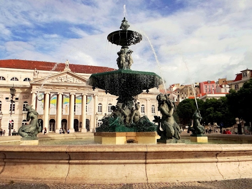 Piazza Don Pedro IV (meglio conosciuta come Piazza del Rossio o semplicemente Rossio)- LISBONA. Vi si sono svolte corride, festival e persino autodafé (era una cerimonia pubblica, facente parte soprattutto della tradizione dell'Inquisizione spagnola, in cui veniva eseguita, coram populo, la penitenza o condanna decretata dall'Inquisizione).