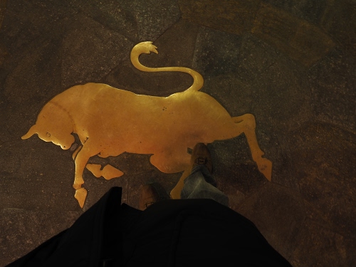 a Torino è tradizione pestare gli attributi del toro posto sotto i portici di piazza San Carlo