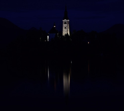 Foto dell'autore Pizzicastelle candidata al contest fotografico campanile su Dizy. Data inserimento: sabato 11 dicembre 2021. Titolo: Passeggiando attorno al lago di notte