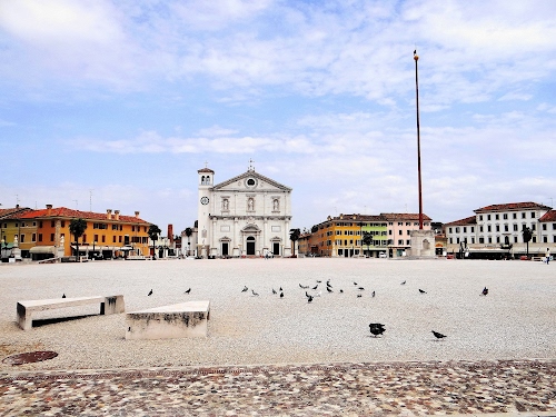 Piazza Grande di Palmanova la città fortezza, fortificata per eccellenza si trova in provincia di Udine. Costruita dalla Repubblica di Venezia nel 1593, è chiamata la città stellata per la sua pianta a stella a nove punte.