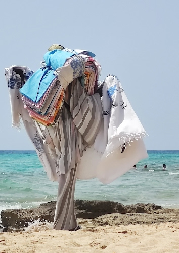 Foto dell'autore passionescatto candidata al contest fotografico forma su Dizy. Data inserimento: sabato 29 luglio 2023. Titolo: Il venditore di teli.