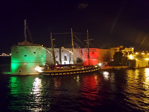 Attracco al molo del Castello Aragonese di Taranto.