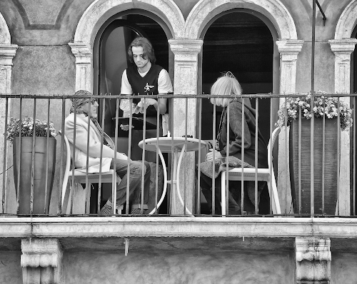 Seduti sul balcone.