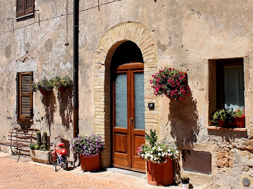 Tag: fiori, vasi, finestre, bicicletta, porta, persiane, panchina, arco, piante, portone, legno, casa, vetro, uscio, bici, rosso, ingresso, grondaia, finestra, fioriere, ombre, ombra.