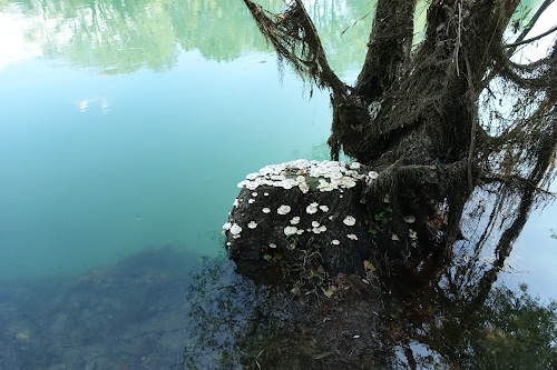 Un ceppo sulle rive dell'Adda che sembra ricoperto di fiori