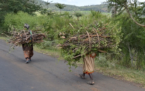 Due donne etiopi trasportano legna fino al villaggio