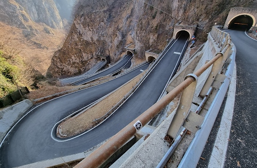 Passo San Boldo, che collega la provincia di Belluno con quella di Treviso, precisamente Trichiana con Cison di Valmarino. Detta strada dei 100 giorni, è nata come strada militare durante 1a 1a Guerra Mondiale, costruita dagli austriaci. |