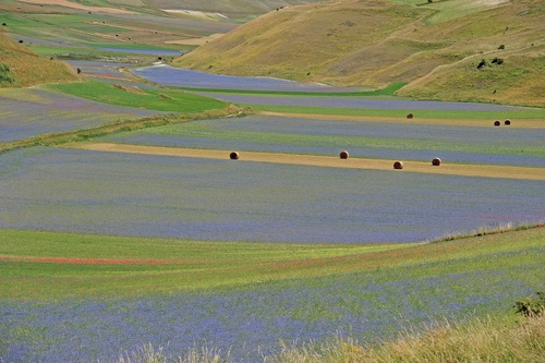 Altri tag (senza riscontro): verdi, collina, balle, valle, prato, vallata, castelluccio, piantagione, colori, gialli, piana, rotoballe, pianura, coltivazioni, estate.
