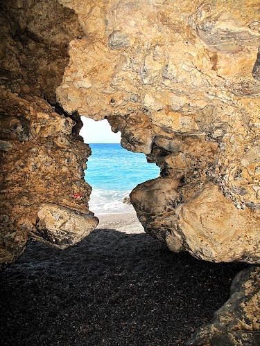 Spiaggia con grotta.