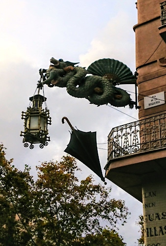 L'insegna del venditore di ombrelli sulle Ramblas di Barcellona.