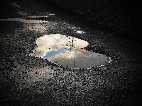 32° Moderne architetture riflesse in una pozzanghera | 43° Pozzanghera con tombino e riflesso |