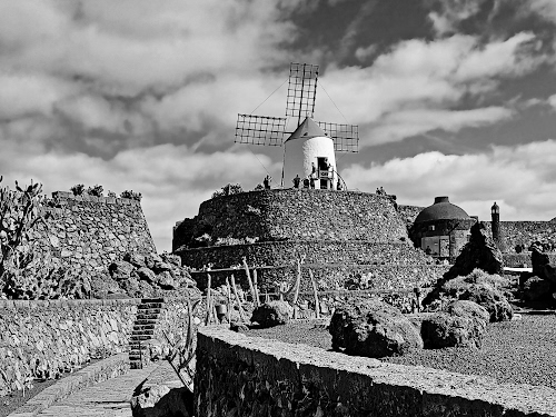 Foto dell'autore mavi80 candidata al contest fotografico mulini su Dizy. Data inserimento: mercoledì 9 luglio 2025. Titolo: Mulino al Jardín de Cactus/bn
