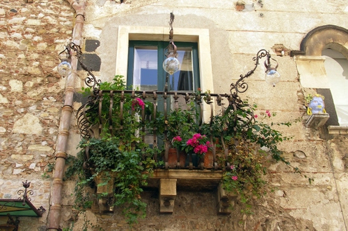 Tag: balcone, fiori, lampioni, finestra, verde, piante, lampione, ringhiera.