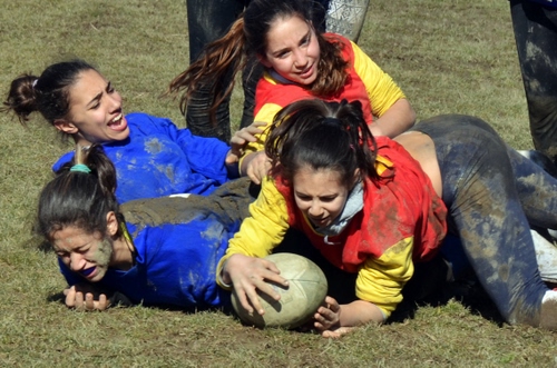 Grazie. Hanno vinto le giallo rosse, l'espressione delle ragazze fa capire la durezza dl rugby. |