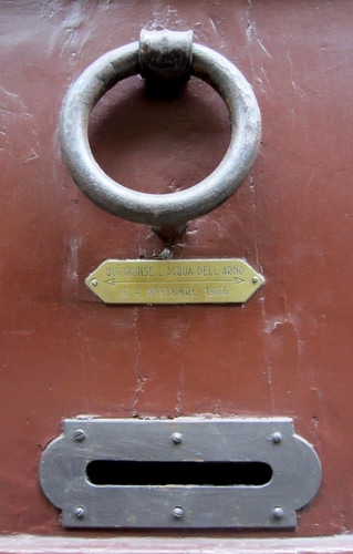 Firenze, batacchio con targa dell'alluvione del 66.
