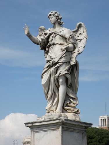 Si tratta del sesto angelo, di Girolamo Lucenti, che mostra ai fedeli i chiodi che trapassarono le mani e i piedi di Gesù. L’iscrizione dice: “Volgono lo sguardo a me che crocifissero”.