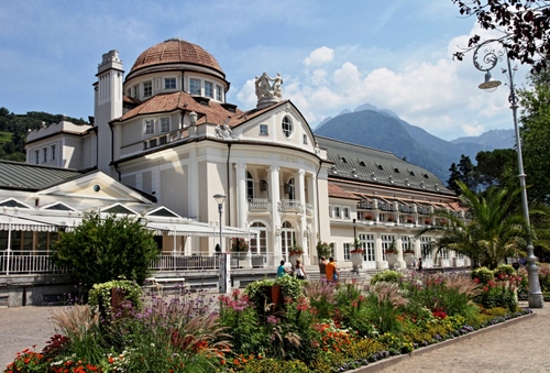 Il Kurhaus di Merano, costruito nel 1874 da Josef Czerny, ristrutturato e ampliato tra 1912 e 1914 dall'architetto viennese Friedrich Ohmann, è uno dei simboli della città termale altoatesina ed uno dei capolavori in stile liberty più famosi di tutta l'area alpina. fonte Wikipedia