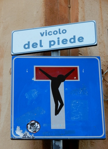 Già, Diana! Non ricordo di preciso a quale incrocio ma quasi sicuramente era tra le viuzze di Trastevere. Non so se considerarlo più irriverente o più divertente!!! |