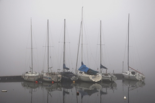 Tag: barche, nebbia, porto, riflessi, alberi, mare, acqua, lago, vela, riflesso, foschia.