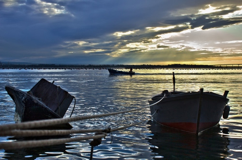 Non sono abitualmente un mattiniero .Se ti capita di tornare dalla stazione centrale di Taranto, per accompagnare un figliolo che parte all'alba ,al ritorno hai la possibilità di veder nascere il giorno ed i pescatori di Mar Piccolo.Attività frenetiche nelle prime ore dell'alba .Esse sono le più propizie per ottenere un buon pescato.