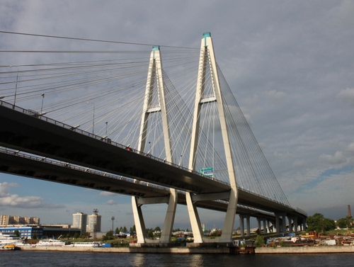 Ponte moderno che si incontra sulla Neva, risalendola poco oltre San Pietroburgo.
