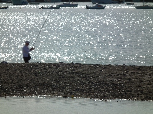 mi piace il controluce con tutti i suoi luccihii che evidenziano la figura del pescatore e delle barche sullo sfondo |
