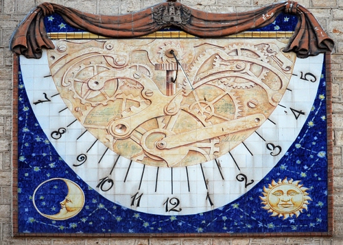 E'una meridiana molto bella e particolare,gli ingranaggi rimandano all'orologio;è diversa da tutte le altre. |