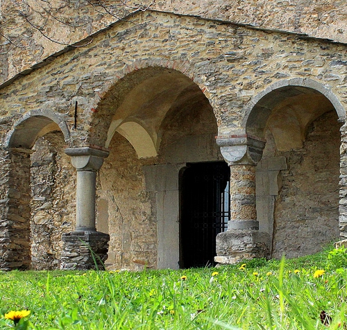 Tag: archi, colonne, prato, chiesa, porta, erba, verde, portico, capitelli, pietra, colonna, fiori.