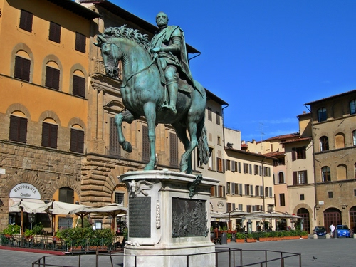 Piazza centrale di Firenze. Statua equestre di Cosimo I de' Medici.