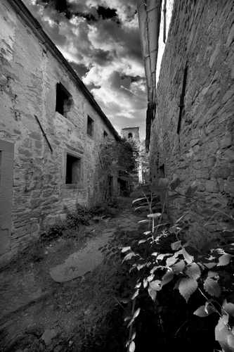 Tag: vicolo, nuvole, bianconero, foglie, finestre, case, pianta, edifici.