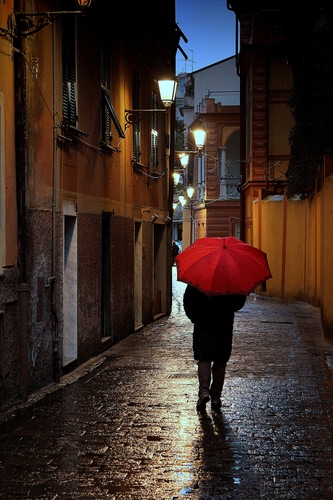 Immagine pervasa da uno struggente senso di solitudine, come vorrei essere sotto a quell'ombrello rosso! |