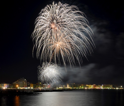 molto bello questo notturno, ho sempre invidiato le foto rappresentanti i fuochi d'artificio, ho provato varie volte a confrontarmi con questo tipo di scatto per poi desistere nel pubblicarne i risultati. suggestiva e ben eseguita, ne apprezzo il risultato, mi piace il formato quadrato e l'effetto limpido del soggetto che pare uno zampillo di uno spumante appena stappato, bella veramente la definizione del soggetto in tutte le sue fronde. presumo che il tempo di scatto sia stato abbastanza lungo e forse effettuato con l'ausiglio di un cavalletto o con una mano ben ferma. hai colto l'attimo e il risultato suggestivo, valorizzato anche dalla location sul mare rafforzata dai suoi riflessi, non può che meritare i miei complimenti. buona luce. |