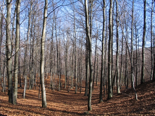 Tag: alberi, bosco, rami, cielo, tronchi, foglie, azzurro, autunno, spogli, fogliame, marrone.