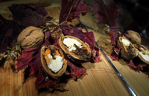 Questa me la ricordo per averla incontrata al voto e mi era piaciuta molto. Ora me la ritrovo con un titolo che credo non meriti. Sarà una mia fissa, ma sono convinto che un titolo vada sempre dato: meglio un titolo anche banale che un numero anonimo. Anche il più semplice, ad esempio solo "noci", o "noci allo specchio" o "......." vedi tu
