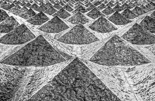 Immaginavo che non venisse compresa, troppo difficile. Non è altro che la parete di palazzo diamanti a ferrara fotografato dal basso all'alto. Il bugnato a forma di diamante da il nome al palazzo. Simpatico , no? |