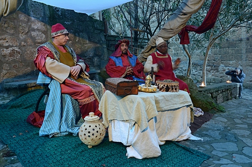 La più antica tradizione del Natale cristiano si sposa mirabilmente con l’ambientazione unica al mondo di Civita di Bagnoregio: il mercato di stoffe, di frutta e spezie trasportano i visitatori in quel villaggio che oltre 2.000 anni fa diede i natali a Gesù Bambino; un insediamento romano, una serie di accampamenti beduini, la lunga via degli artigiani e commercianti e i Re Magi che arrivano dal lontanissimo oriente fanno da splendido contorno alla capanna della Sacra Famiglia.