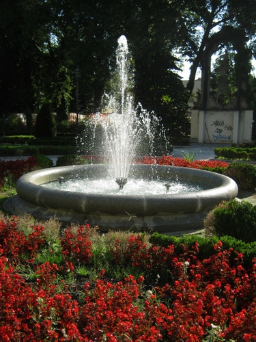 Aiuola con fontana nei giardini pubblici di Cernusco sul Naviglio, nell'hinterland milanese.